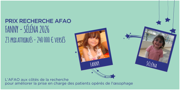 Ce site est administré par les bénévoles de l’Association Française de l’Atrésie de l’Œsophage (AFAO), association reconnue d’utilité publique et agrémentée par le Ministère des solidarités et de la santé.